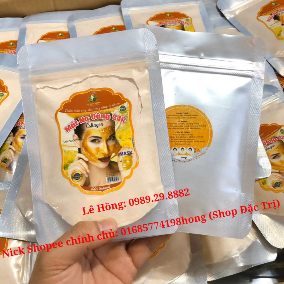 (Mẫu mới) Mặt Nạ Collagen Tinh Chất VÀNG 24K, Gói 100gr, Dưỡng Trắng da, Mờ thâm, nám, sạm da, Se khít lỗ chân lông free ship